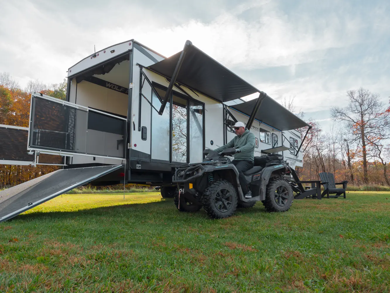 In fact, approximately half of Wolf Pack customers are bunkhouse buyers looking for more sleeping room and versatility in their unit. The Wolf Pack is not always a toy hauler or a bunkhouse. It is whatever you need it to be for the trip you are about to take. If your family likes to take a golf cart, motorcycles, ATV’s, bicycles, kayak’s, coolers, grills, firewood and all the other camping staples, but doesn’t like to take the second vehicle to get it there, look no further than the Wolf Pack. Versatility is the name of the game!