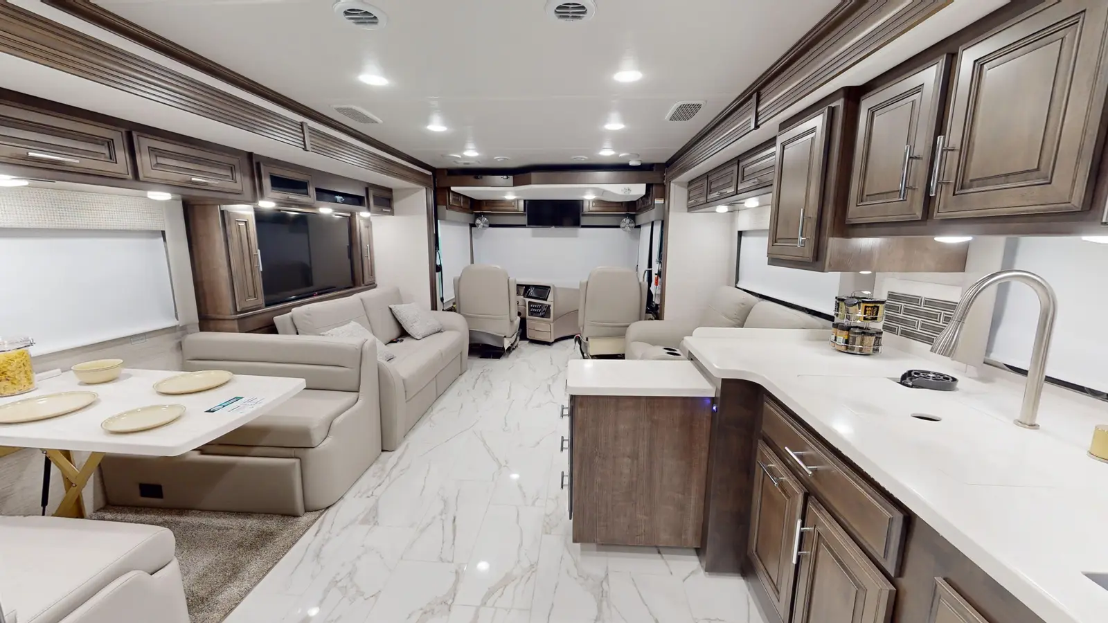 The Berkshire 39A by Forest River offers spacious and comfortable RV living with three slides, a king-size Tilt-a-View bed, a full rear bath, and a half bath. This luxurious Class A motorhome is perfect for extended road trips.