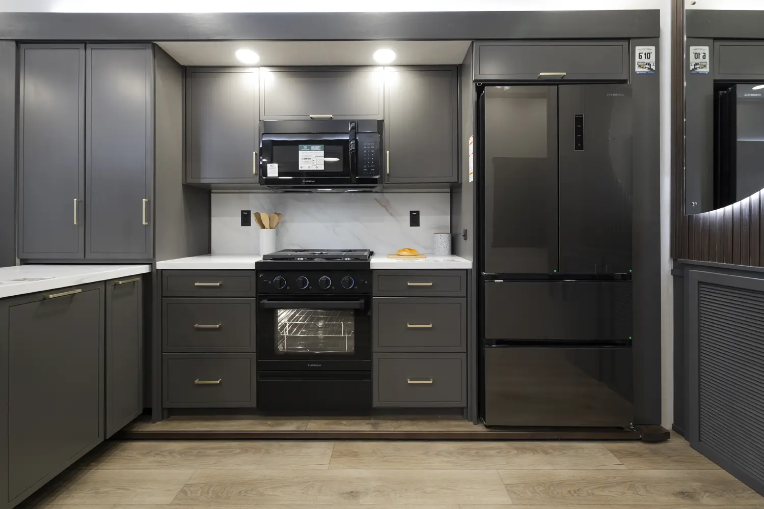 • Flush Floor Slides in Kitchen and Living Area