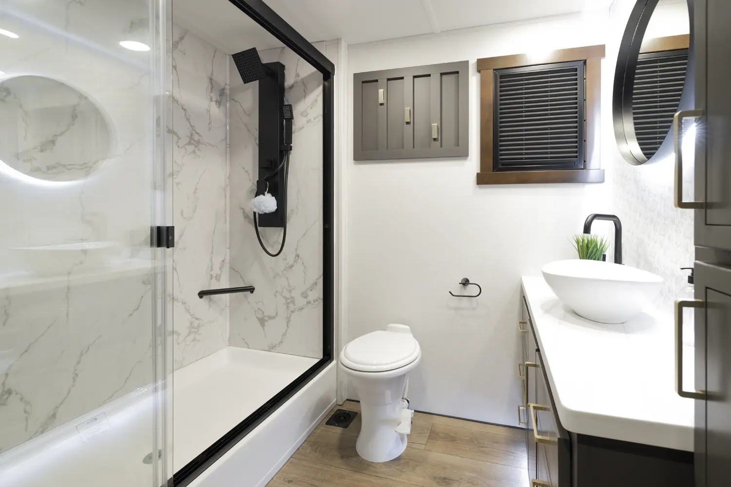 • Nautilus P4 Multi-function Panel with Outside Shower, Black Tank Flush, 12 volt. Battery Disconnect