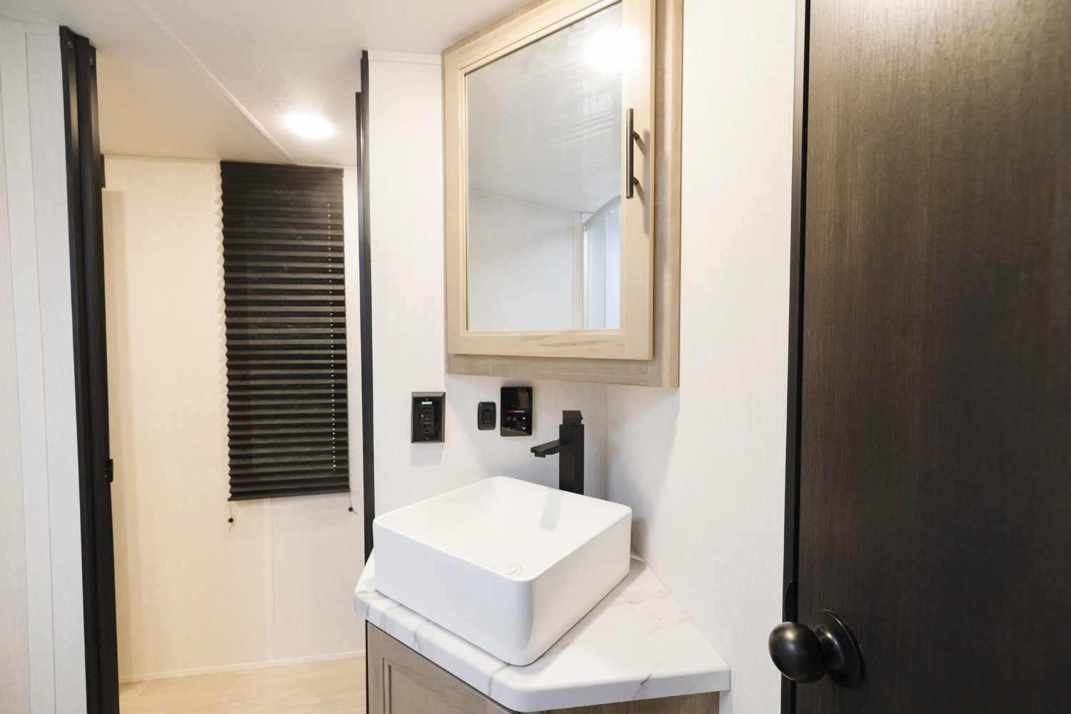 • Blackout Glass, Safety Slam, Friction Hinge Entry Door with Window and Shade Prep (N/A on LP models)