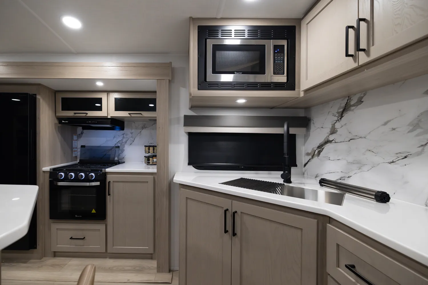• Platinum Package: Auto Leveling, Frameless Windows, 1800W Inverter, MORryde Strut Assist Entry Step, Dual 30 LP Tanks