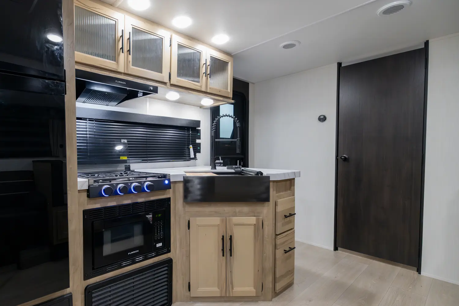 • Blackout Glass, Safety Slam, Friction Hinge Entry Door with Window and Shade Prep (N/A on LP models)