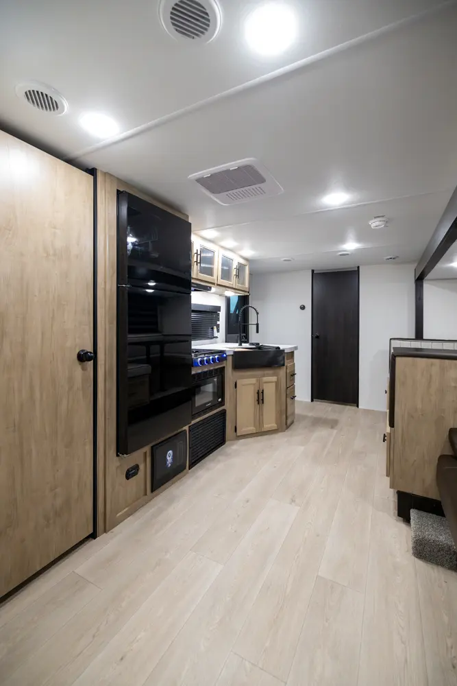 The Cherokee Grey Wolf 29TE by Forest River is a spacious travel trailer designed for families. With a double entry and outdoor bathroom access, this RV offers convenience, flexibility and affordability. The rear bunkhouse provides ample sleeping space for kids, while the outdoor kitchen, complete with a side-by-side refrigerator/freezer, ice maker, cooktop, sink, and storage, is perfect for outdoor entertaining. Experience the ultimate in family camping with the Cherokee Grey Wolf 29TE!