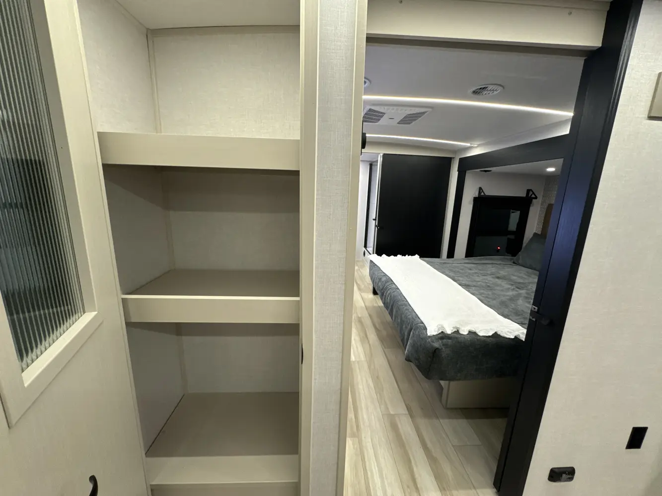 • Pantry Doors with Reeded Glass Inserts & Motion Sensor Lights