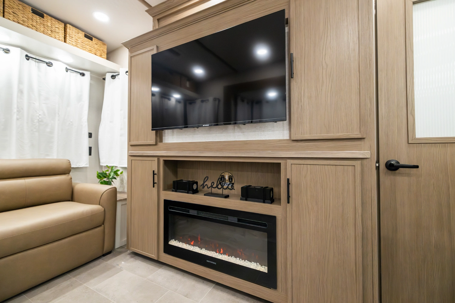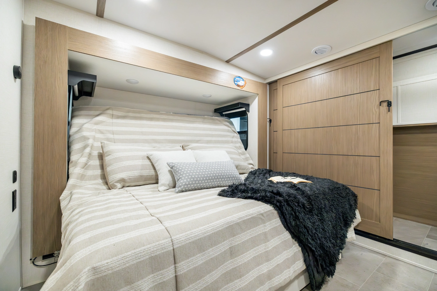 • 110 Outlet & 12V Charging Ports Beside Bed