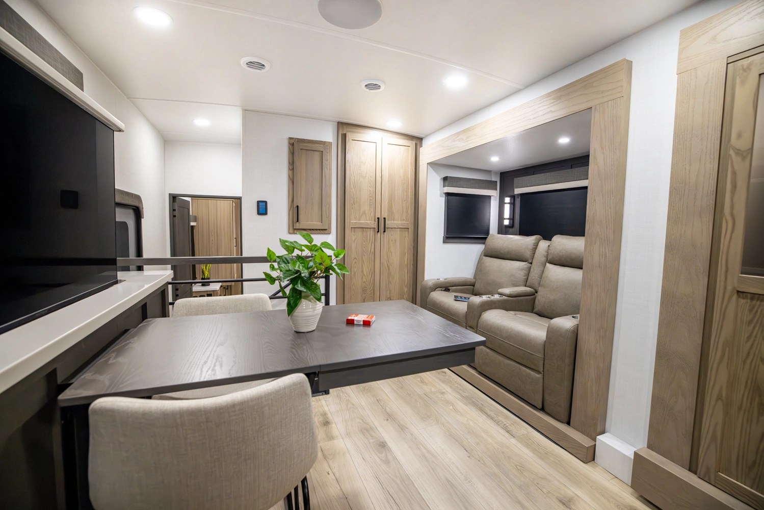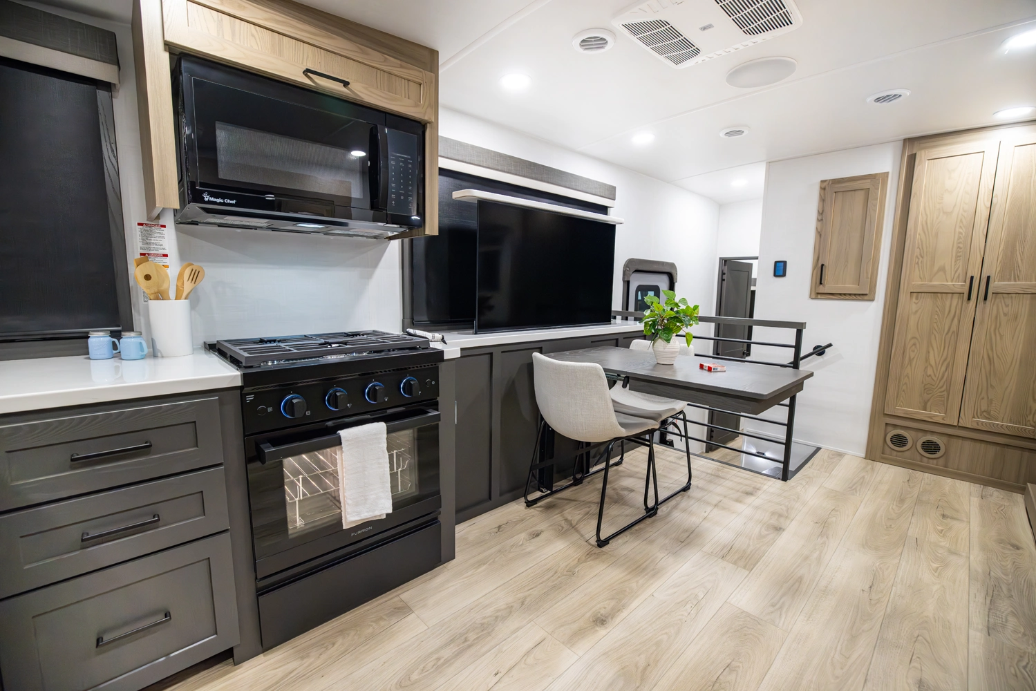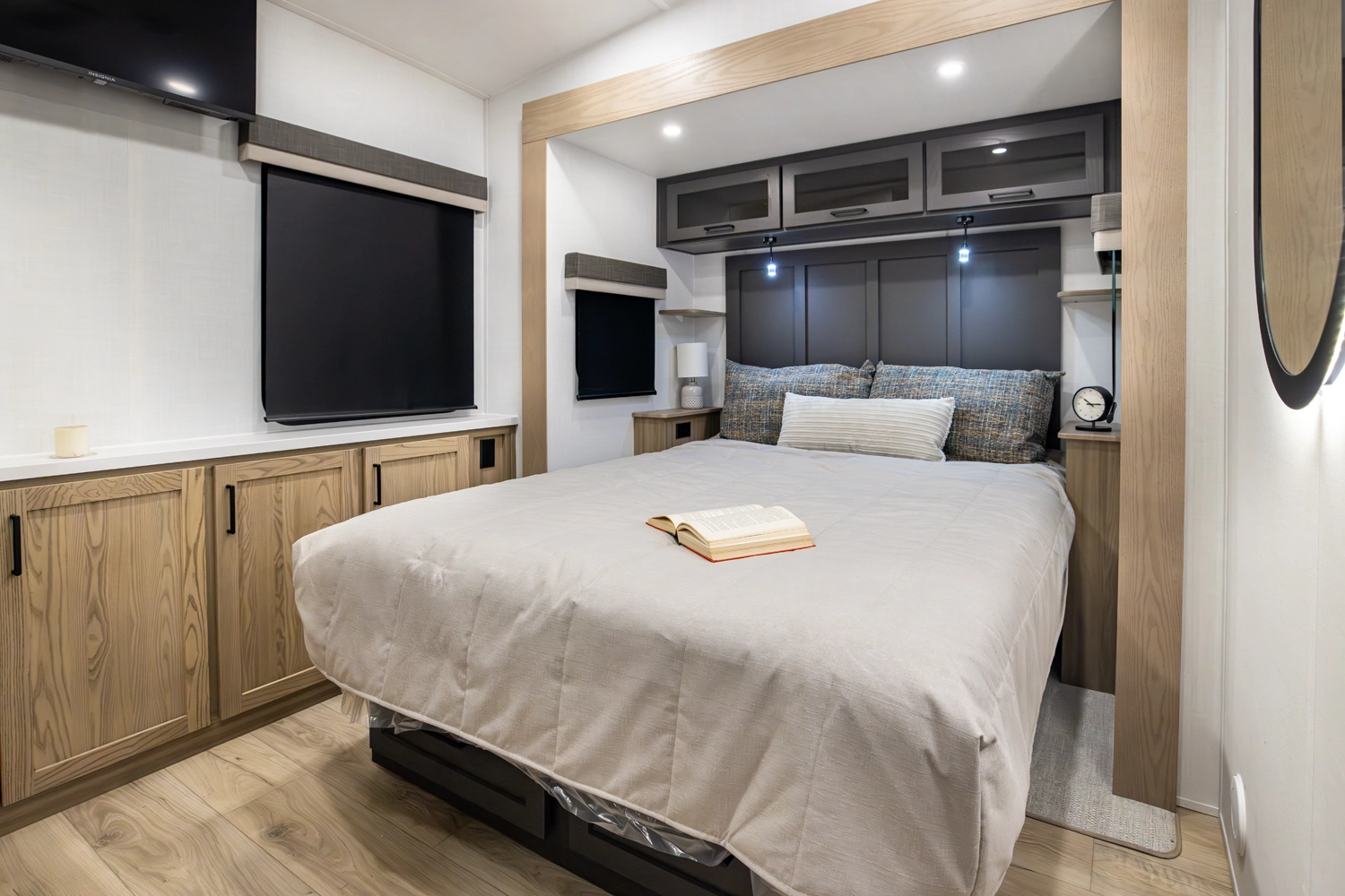 Experience the spacious and smart design of the Rockwood 290SFK fifth wheel. This full profile floor plan features a versatile front kitchen with 86" interior height, abundant counter space and storage, a comfortable living area with theater seating and entertainment center, in a private king size bedroom. With slide outs to expand your space, residential-style comforts throughout, and quality construction, the 290SFK makes every trip relaxing and enjoyable.
