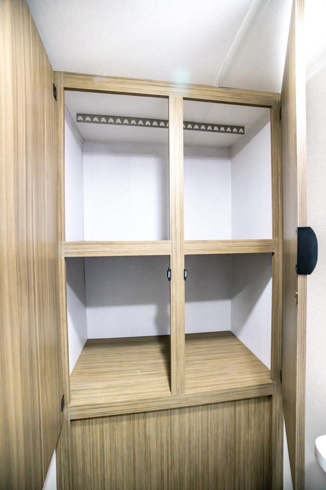 The 167RBK is just over 3,000 lb. of compact, yet feature-packed fun! The queen bed in front flips up to provide sofa space during the day, with end tables for extra storage and convenience. The booth dinette and large window give you great breakfast views, while the large rear bathroom provides a bit more elbow room than you'd expect—plus a bonus linen cabinet!