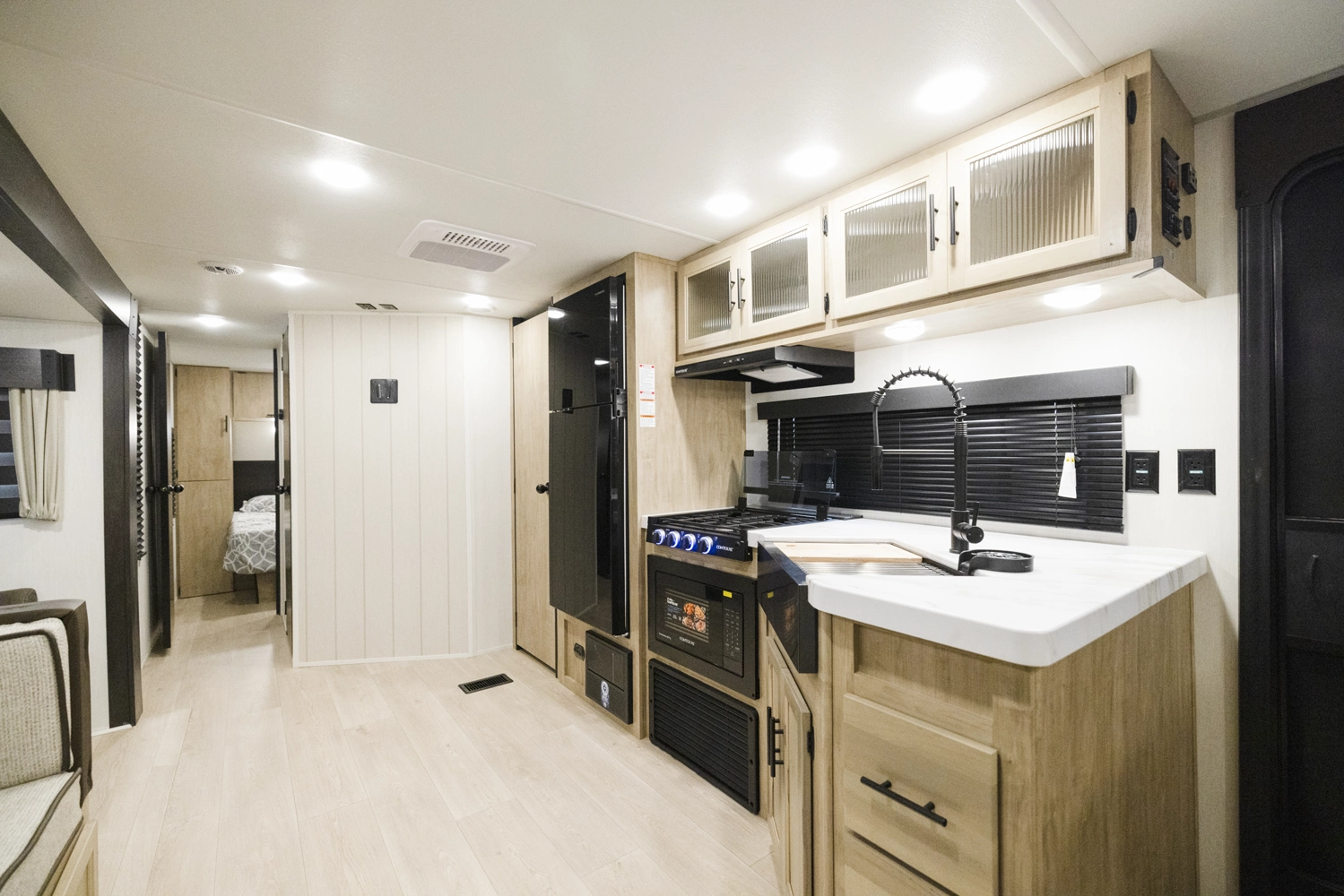• Blackout Glass, Safety Slam, Friction Hinge Entry Door with Window and Shade Prep (N/A on LP models)